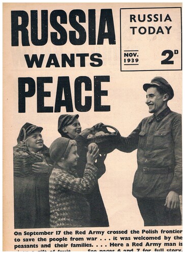 | Title | Russia Today: Nov. 1939. On September 17 the Red Army crossed the Polish frontier to save the people from war... it was welcomed by the peasants and their families... Here a Red Army man is given a gift of fruit... See pages 6 and 7 for full story. |
