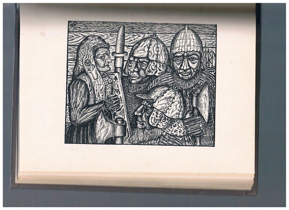 An important edition published by Academia with the dust-wrapper, plates and b/w illustrations by 13 members (Masters of Analytic Art) of the school of Pavel Nikolaevich Filonov, Russian Futurist painter and graphic artist of ".. extraordinary originality" John Milner pp148-150. Executed under Filonov's direct supervision, art work by Alisa Poret, Mihail Petrovich Tsybasov, Tatyana Glebova amongst others. “In 1933 the Soviet publishing house Academia produced a remarkable volume: an edition of the folk epic Kalevala...” (Milner-Gulland, 1983).