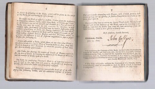Small square 12mo. (sigs. in sixes). 11 x 13 cm. Original sheep, spine gilt ruled, raised bands. Later paste-downs, f.e.p. original with owner’s name in contemporary ink. Half-title dated 1800, list of taxes opposite title, John Cullyer’s own signature in ink to Preface p.7. (A4r|) 144 pp. plus [iv]pp advertisements. Many full page tables and diagrams in-text.